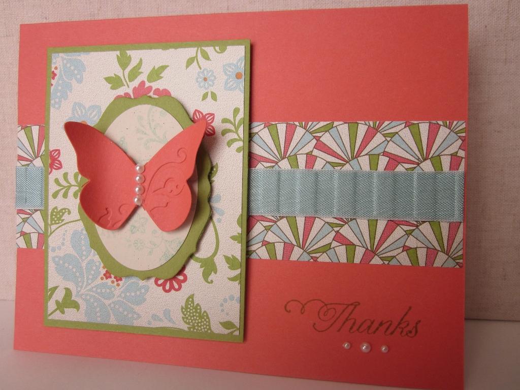 Here are two more cards that I made with the Freshly Made Sketch #17. When I went to make more of the original, I saw that the peach parfait/pool party Everyday Enchantment DSP had butterflies on it, so I replaced the bird with a butterfly, and changed up the colors.